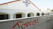 And while they've dealt with a lot of vandalism over the years, they say they've never seen anything like this: The word "Terrorist" was spray-painted in two places around the temple.