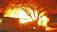 A fire completely destroyed a mobile home on the 45800 block of 10th Street East in Lancaster Monday, Aug. 5, 2013. (KABC Photo)