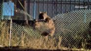 Left: A young bear climbs a chain-link fence at the Baldwin Park-West Covina border on Friday, Oct. 11, 2013. Right: The bear is driven back to the forest by Fish and Wildlife officials after it was tranquilized. (KABC Photo)