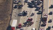 A multiple-vehicle crash caused by a wrong-way driver shut down lanes of the northbound 14 Freeway near Escondido Canyon Road on Monday, June 17, 2013. (KABC Photo)