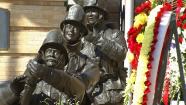 A new sculpture was unveiled at the ceremony - a glass badge donated in honor of firefighter Glenn Allen, who died in 2011. The sculpture will remain on display at the LAFD Museum in Hollywood.