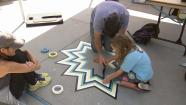 Artists use tape to make a design on the floor at a 'Big Draw L.A.' event in downtown Los Angeles on Sunday, Oct. 13, 2013. (KABC Photo)