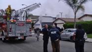 Firefighters and police respond to a fire at a home on the 11500 block of Panay Street in Cypress on Saturday, Aug. 3, 2013. (KABC Photo)