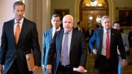 Republican senators, from left, Sen. John Thune, R-S.D., Sen. John Barrasso, R-Wyo., Sen. John McCain, R-Ariz., and Sen. John Hoeven, R-N.D., walk from the floor to a closed-door caucus after a compromise between the Democratic majority and the GOP minority on filibuster rules, at the Capitol in Washington, Tuesday, July 16, 2013. (AP Photo / J. Scott Applewhite)