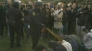 A police officer is seen pepper-spraying Occupy demonstrators at UC Davis in November 2011. (KABC Photo)