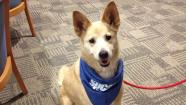 Carmen is very calm and greets everyone with a soft wag of her tail. She knows simple commands like "sit," and she also gets along well with most dogs.