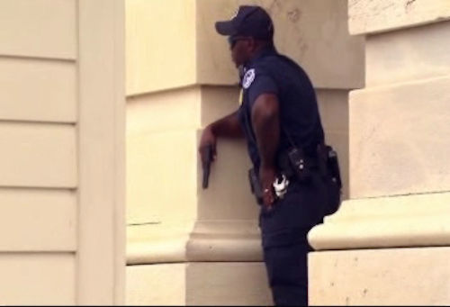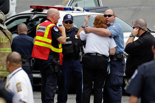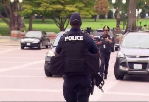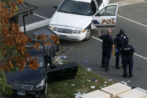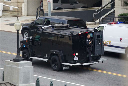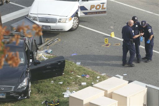1 of 31: A Capitol Police officer runs through the first floor of the Senate on Capitol Hill in Washington, Thursday, Oct. 3,2013, during the lockdown order following a shooting on Constitution Avenue on Capitol Hll and near the Supreme Court. A police officer was reported injured after gunshots at the U.S. Capitol, police said Thursday. They locked down the entire complex, at least temporarily derailing debate over how to end a government shutdown. (AP Photo/J. Scott Applewhite) (AP Photo/ J. Scott Applewhite)