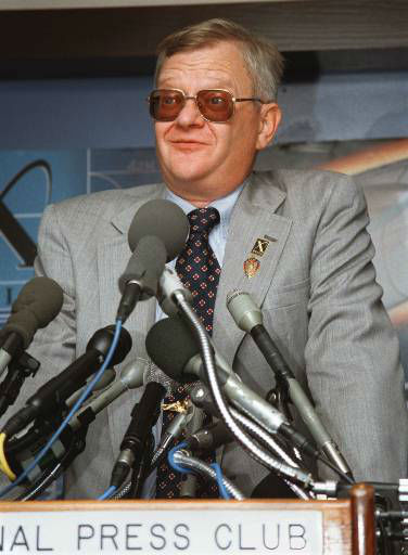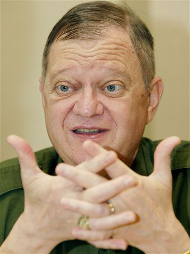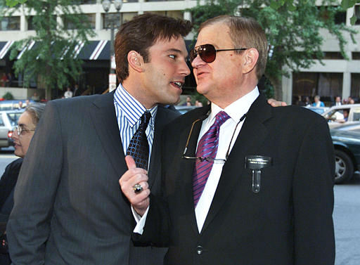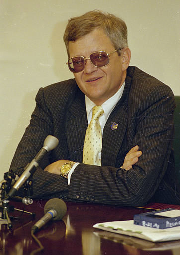 1 of 7: Author Tom Clancy, left, adjusts his glasses as actor Tom Selleck looks on, in this January 5, 1994 photo. (AP Photo/Paul Sakuma) (AP Photo/ PAUL SAKUMA)