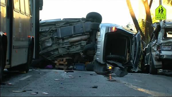 1 of 12: A speeding driver caused a deadly collision on a main thoroughfare in San Francisco. The horrific accident killed a teenager, critically injured his mother and sister and sent a total of six people to the hospital. The crash happened just before 7 a.m. at Pine and Gough Streets on September 27, 2013. (KGO Photo)