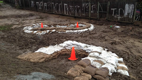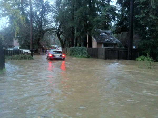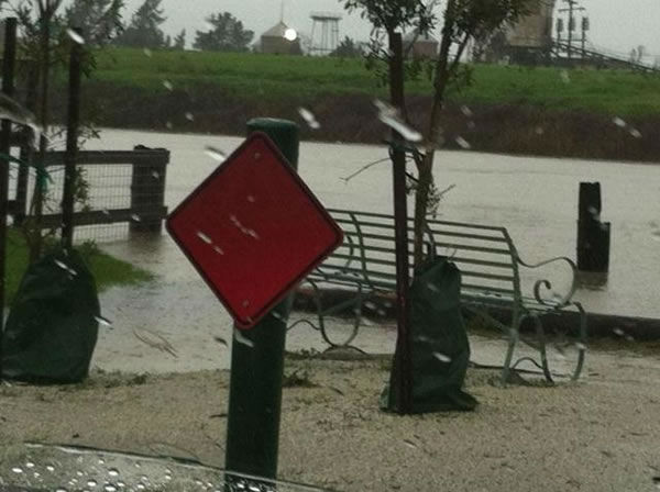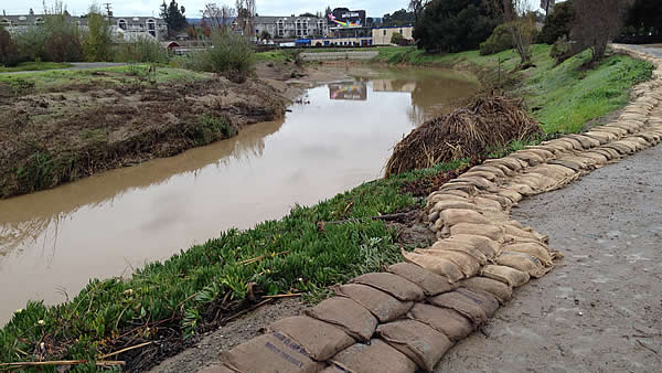 1 of 28: Officials placed sand bags along a creek in Palo Alto after floodwaters chased hundreds out of their homes on Monday. ( Photo)