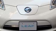 The Nissan Leaf is presented as the 2011 World Car of the Year at the New York International Auto Show Thursday, April 21, 2011. (AP Photo/Richard Drew)