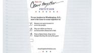 This image provided by Starbucks shows a petition the company is asking customers and businesses to sign, calling for an end to the partial government shutdown that has forced hundreds of thousands of federal workers off the job. The petition, which will be available at all Starbucks 11,000 U.S. locations to sign beginning Friday, calls for reopening the government, paying debts on time and passing a long-term budget deal by the end of the year. (AP Photo/Starbucks)