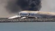 Solis also got dramatic video as the cabin caught fire. The black cloud of smoke was ominous. Passengers were still running away from the aircraft while fire crews sprayed the fuselage.