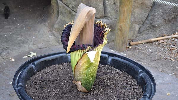 1 of 23: 'Pewtunia' the Corpse Flower has begun to bloom at the Houston Zoo. (ABC13)