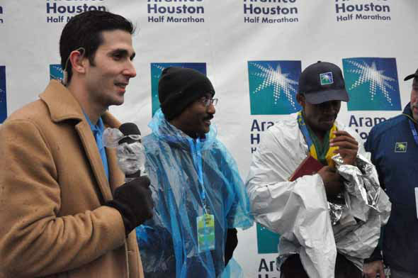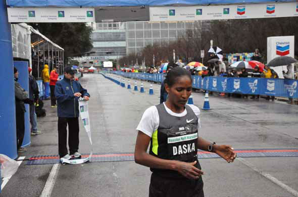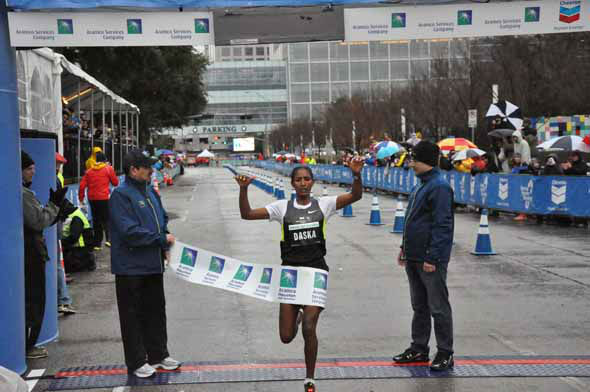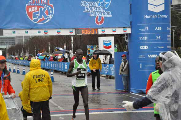 1 of 251: Tens of thousands of wet and cold runners crossed the finish line for the Chevron Houston Marathon and Aramco Houston Half Marathon on Sunday, January 13, 2013. (KTRK Photo)
