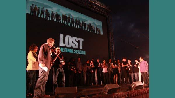 1 of 21: Thousands of fans greeted the cast and crew of LOST on Waikiki Beach Saturday night. They got a special screening of the upcoming season premiere at the "Sunset on the Beach" event.