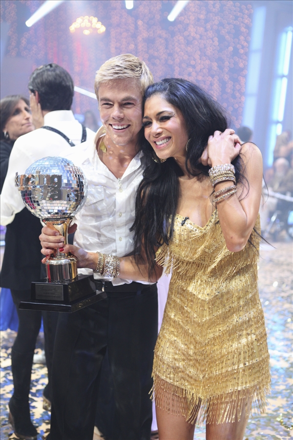 1 of 11: In this image provided by ABC Nicole Scherzinger and her partner Derek Hough perform the Argentine Tango Tuesday May 25, 2010. For the first time ever, all three couples chose the same dance, the Argentine Tango. Nicole Scherzinger and partner Derek Hough dominated throughout the 10th season of the hit ABC show and bested Olympic gold medalist Evan Lysacek to win the "Dancing" crown Tuesday night. ( Photo / AP/ABC/Adam Larkey)