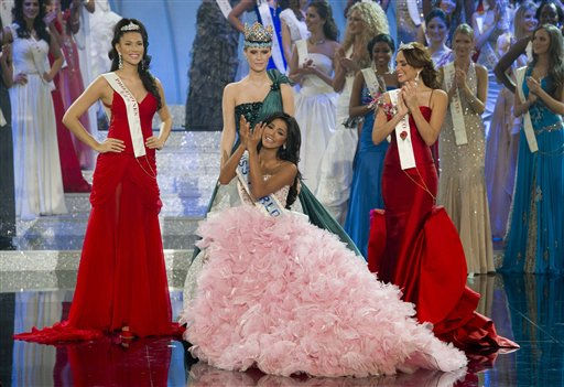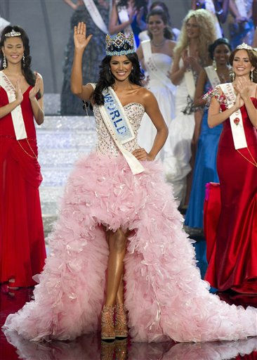 1 of 15: Miss Venezuela Ivian Sarcos reacts as she is crowned winner, Miss Philippines Gwendoline Ruais, left, was second at the Miss World competition held at Earls Court in London, Sunday, Nov. 6, 2011. (AP Photo/Kirsty Wigglesworth) (AP Photo/ Kirsty Wigglesworth)