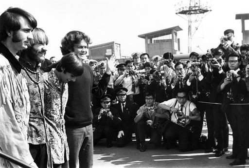 1 of 12: The Monkees pose with their Emmy award at the 19th Annual Primetime Emmy Awards in Calif. on June 4, 1967. They won for best comedy series and best comedy direction for their television program "The Monkees." The group members are, from left to right, Mike Nesmith, Davy Jones, Peter Tork, and Micky Dolenz. (AP Photo) (AP Photo/ XNBG)