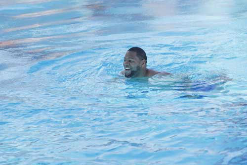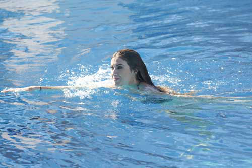 1 of 97: SPLASH - "Splash" marks the first time 10 celebrities will train and compete in regulation platform and springboard diving at dizzying heights in front of a weekly poolside audience. Leading up to the competition, the world's most decorated and medaled diving legend, Greg Louganis, will give each celebrity weeks of training. Each dive will be critiqued by the judges, London Olympic U.S. Gold medalist David Boudia and Australian Olympic athlete and USA Dive Team director Steve Foley. "Splash" premieres TUESDAY, MARCH 19 (8:00-9:00 p.m., ET) on The ABC Television Network. KATHERINE WEBB (Photo/Kelsey McNeal)