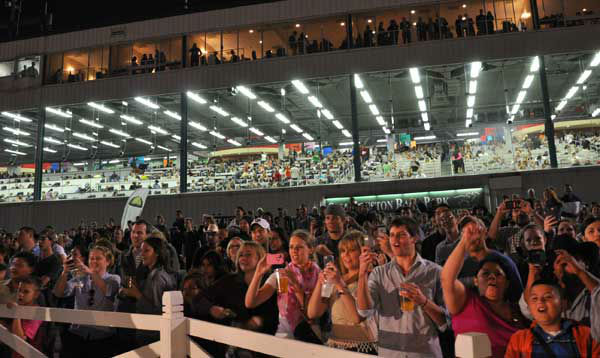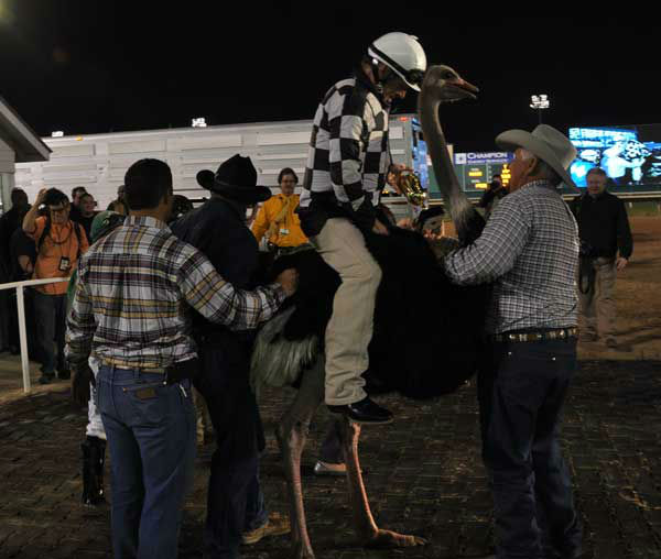 1 of 56: It wasn't a typical Saturday night at the Sam Houston Race Park. People of all ages packed into the sold-out park to watch camels and ostriches race a distance of approximately 100 yards in between horse races. (ABC Photo/ Mena El-Sharkawi)