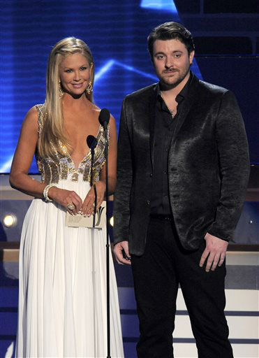 1 of 12: Actress Beth Behrs speaks on stage at the 48th Annual Academy of Country Music Awards at the MGM Grand Garden Arena in Las Vegas on Sunday, April 7, 2013. ( Photo / AP photo)