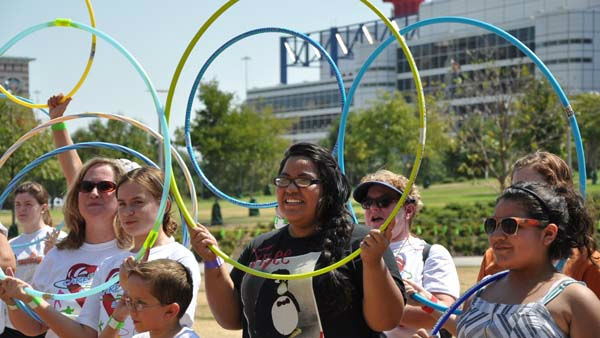 1 of 19: Hundreds of people of all ages gathered at Discovery Green in downtown Houston on Sunday, August 28, 2011 to try to set the world record in simultaneous hula hoopers -- all while raising money for Easter Seals Greater Houston (KTRK Photo)