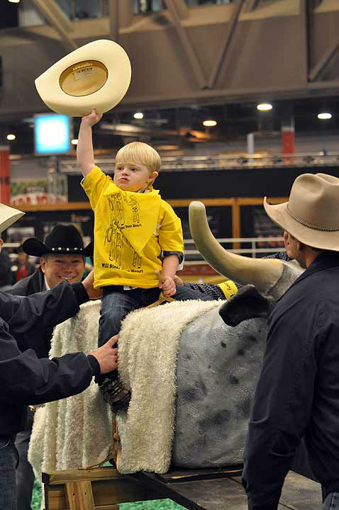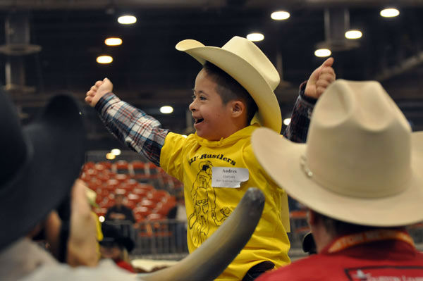 1 of 102: Some very special children took center stage at the Main Arena in Reliant Center during the Houston Livestock Show and Rodeo on Thursday, February 28, 2013 for the Lil' Rustlers Rodeo. The children rode horses, visited newborn animals, and tried their hand at roping and riding in activities designed especially for them, with the help of volunteer cowboys and cowgirls, clowns and the members of the Special Children's Committee. (KTRK Photo/ Gina Larson)