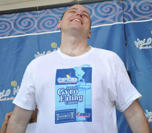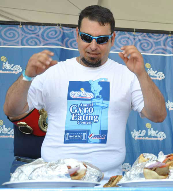 1 of 107: These are photos from the sixth annual Niko Niko's World Gyro Eating Championship Sunday, May 19, 2013, at the Greek Festival in west Houston. Top-ranked competitive eater Joey Chestnut won with 22 1/4 gyros consumed in 10 minutes. Second place was Matt Stonie. (Photo/ABC13)