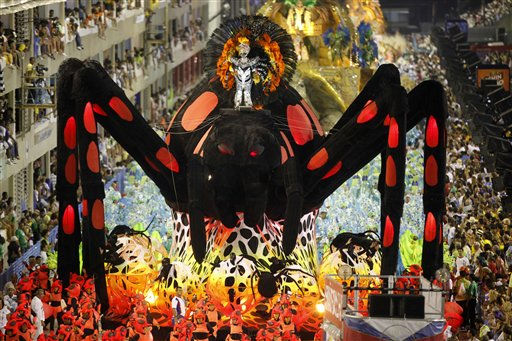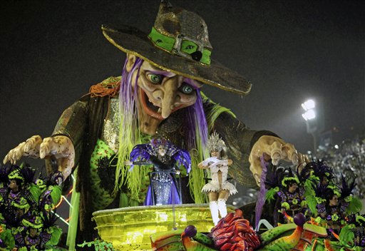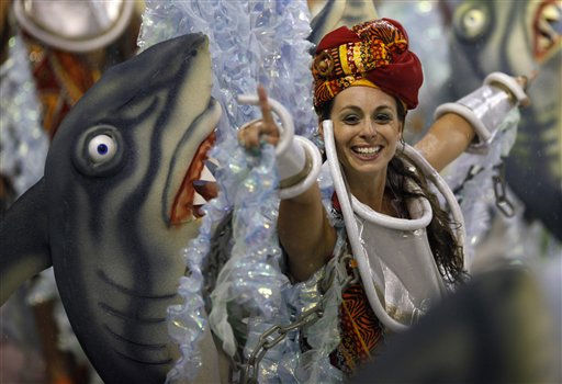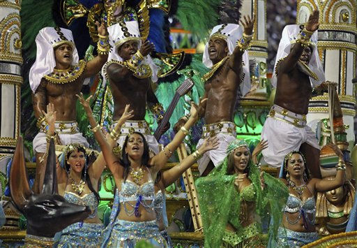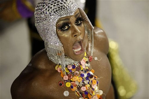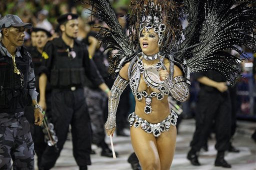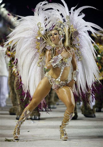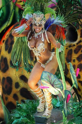 1 of 31: An Imperatriz Leopoldinense samba school dancer performs during a Carnival parade in the Sambadrome in Rio de Janeiro, Brazil, Sunday March 6, 2011. (AP Photo/Rodrigo Abd) (AP Photo/ Rodrigo Abd)