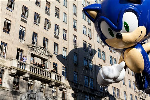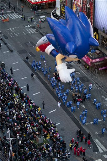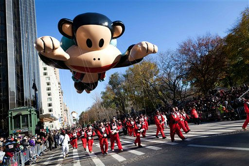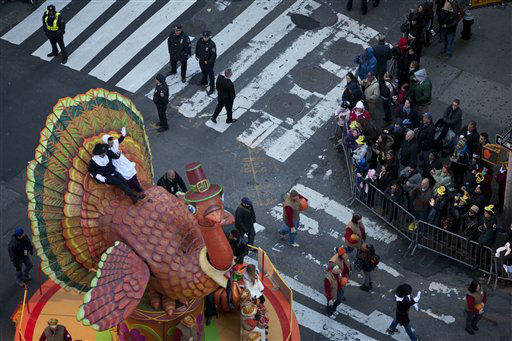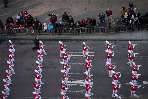 1 of 13: A marching band marches through Times Square during the Macy's Thanksgiving Day Parade in New York on Thursday, Nov. 24, 2011. The parade premiered in 1924, this is its 85th year. (AP Photo/Andrew Burton) (AP Photo/ Andrew Burton)