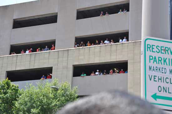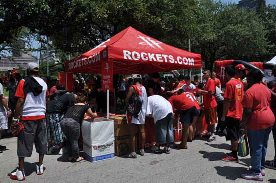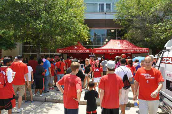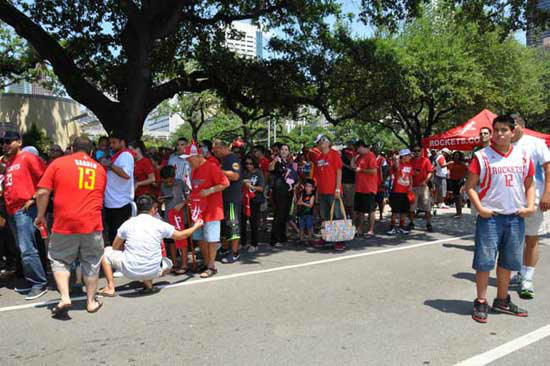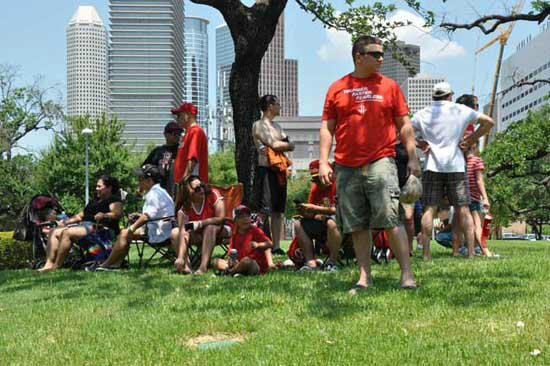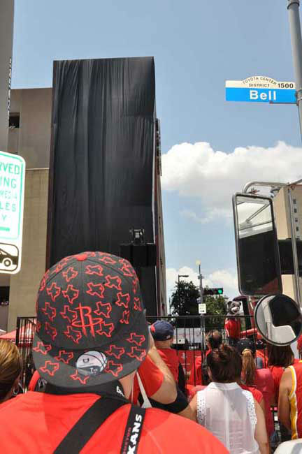 1 of 74: The Houston Rockets hosted a Red Rally downtown where fans braved the heat to welcome Dwight Howard to the team and to the city (KTRK Photo/ Kristy Gillentine)