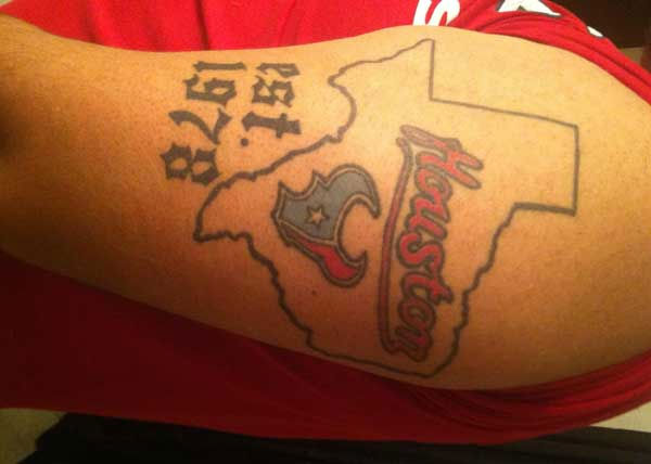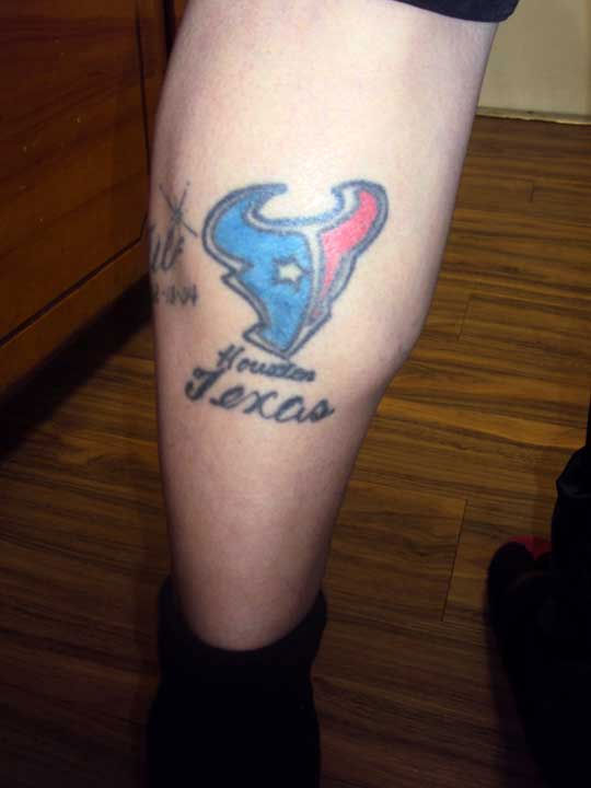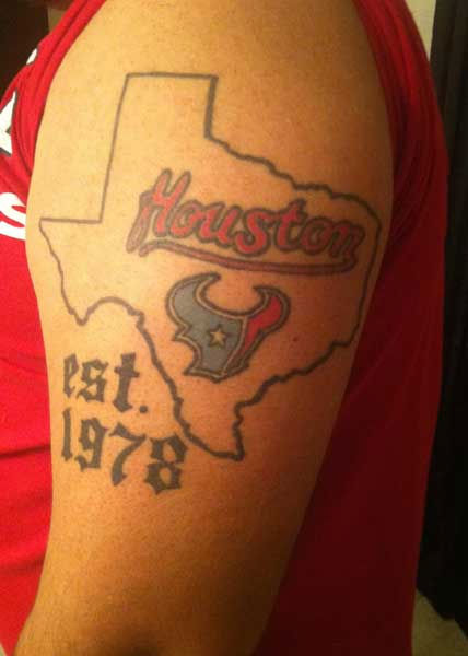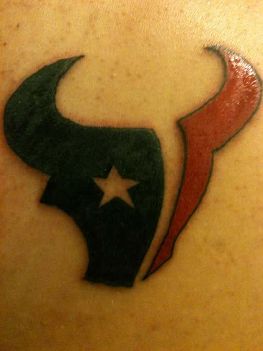 1 of 23: These are photos sent to us through our iWitness Reports. If you have a Texans tattoo, too, we want to see. Email photos to news@abc13.com or upload them on our iWitness Reports page. (Photo/iWitness Reports)