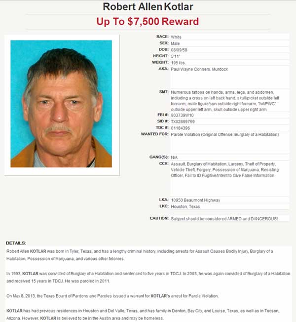 1 of 10: Know this fugitive? Call 1-800-252-TIPS (8477) ( Photo / Texas Department of Public Safety)