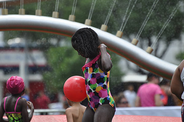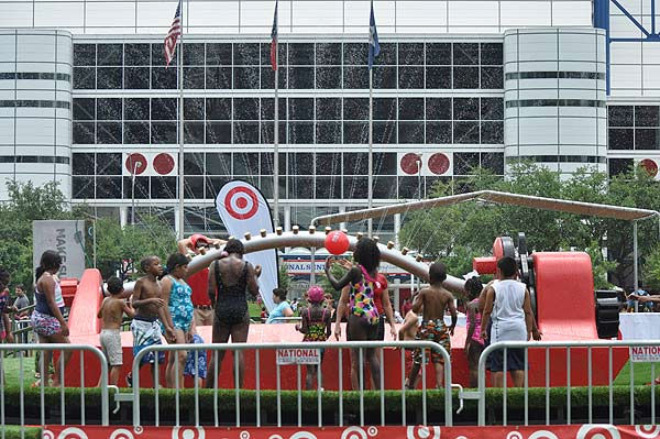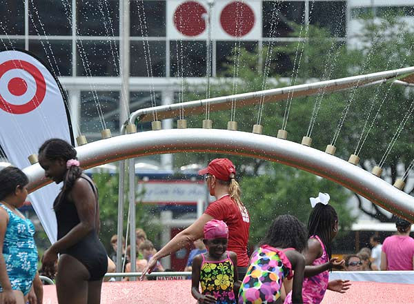 1 of 62: From June 24-26, 2011, Discovery Green is home to a supersized sprinkler as part of Target's mission to 'Make Summer Funner.' Entrance is free. Just bring a swimsuit to Discovery Green's Jones Lawn. But the giant sprinkler isn't the only fun activity that kids and families can enjoy to cool off during the hot summer months in downtown Houston. (KTRK Photo/ Gina Larson)
