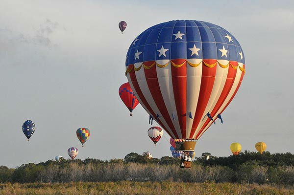 1 of 50: A unique weekend of fun as the annual Ballunar Liftoff was held at NASA's Johnson Space Center on October 21-23, 2011. More than 80 hot air balloons, skydivers, hang gliders and aerial acrobats took place at the festival, celebrating mankind's fascination with flight. (KTRK Photo)
