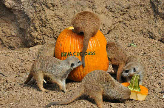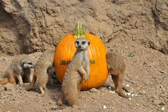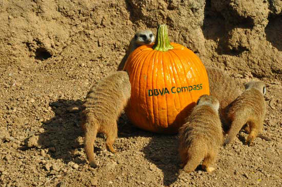1 of 57: The Houston Zoo's frightfully enjoyable Zoo Boo kicks off Friday October 12. To get everyone in the Halloween spirit and in the mood for 3 weekends of Zoo Boo, they created a 'pumpkin amusement park' for the meerkat 'mob' at the Zoo's Natural Encounters exhibit. ( Photo / ABC-13)