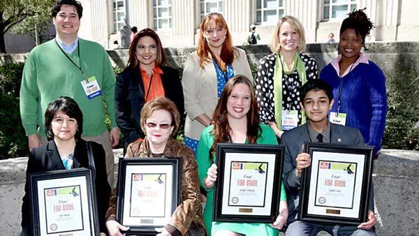 1 of 5: Neighborhood Centers honors four individuals who embody the 'For Good Movement' seeking to inspire people to make commitments to improve communities. Bottom row: (From left) Amy Mena, Liz Adams, Diane O'Brien, Samir Rahi; Top row: (From left) Runners-up John Gorczynski, Maroe Moreno, Jenni Rebecca Stephenson, Roxanne Paiva and Cynae Punch-Brown (Facebook.com/NeighborhoodCenters)