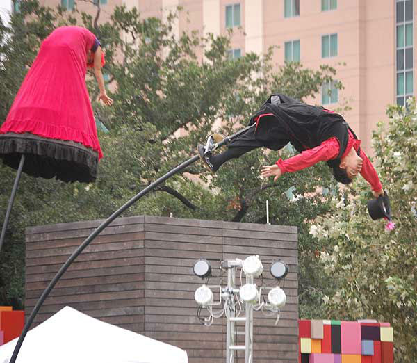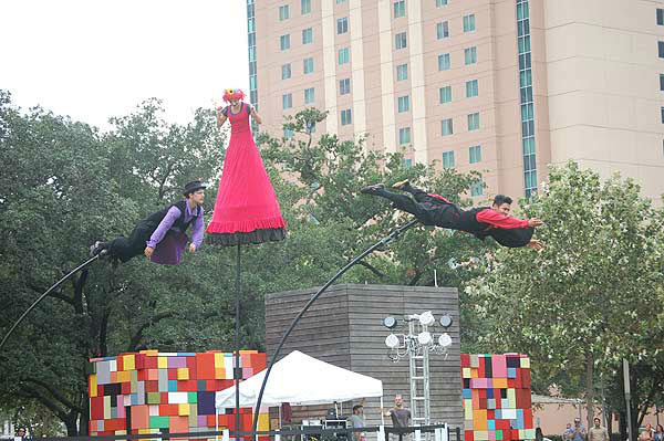 1 of 24: Australia's Strange Fruit brought their unique performance to Discovery Green on September 21, 2013, with a fusion of theatre, dance and circus perched atop 14-foot tall flexible poles. Swoon! is a 25 minute performance featuring four daredevils telling a spectacular story of love, loss, joy and freedom. (KTRK Photo)