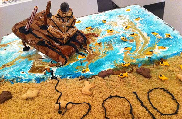 1 of 11: The winners of the Second Annual Gingerbread Build-Off are on display at the Architecture Center Houston in this incredible seasonal exhibition of talent. This entry takes a tongue in cheek look at last summer's Gulf oil spill (KTRK Photo/ Adela Uchida)
