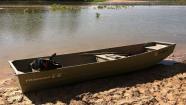 The boat is described as a 2002 14-foot Basstracker aluminum flat bottom boat that is colored gray on gray. The model is TX-6829JR and the serial # is BUJ11138K102. It is valued at $1,500 to $2,000 which makes this a felony theft offense. All information has been entered into the state's stolen database.