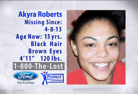 (Jamestown, NY - WABC, August 12th) Akyra was last seen on April 08, 2013. She may be in the company of an adult male. They may travel to Puerto Rico. Akyra is Biracial. She is Black and White.