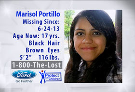 (Charlottesville, VA - WABC, August 12th) - Marisol was last seen on June 24, 2013. She may still be in the Charlottesville area or she may travel to Woodbridge or Sterling, Virginia, or Maryland.