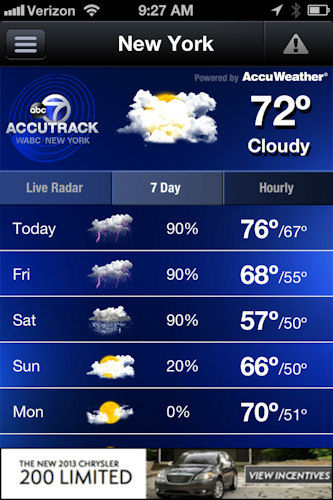 1 of 13: When bad weather is in the AccuWeather forecast, now you can have the full power of AccuTrack interactive radar in the palm of your hands! The AccuTrack Weather Alert app is now available for iPhones and Androids! ( Photo)