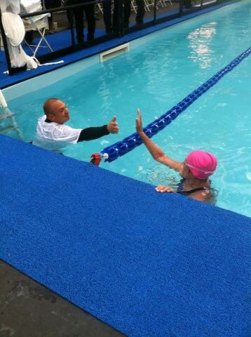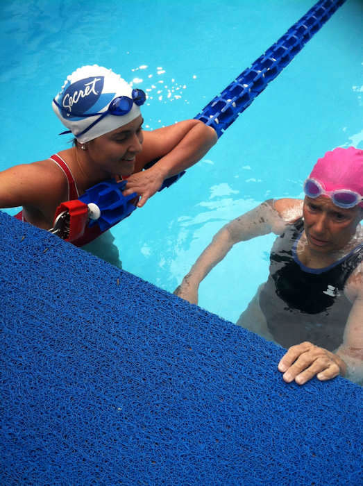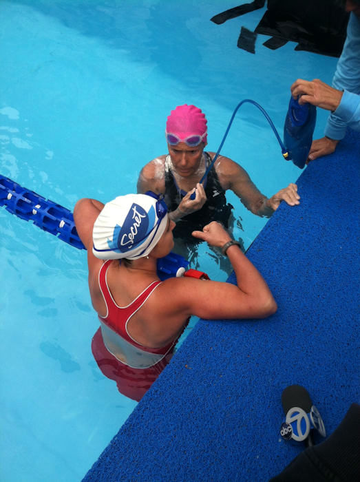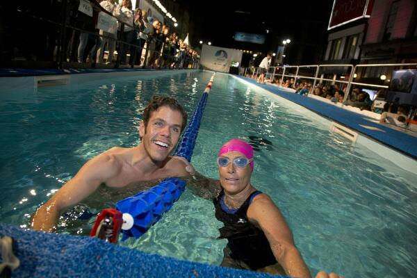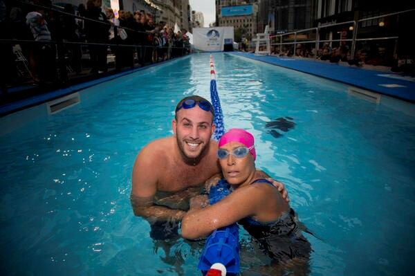 1 of 11: Amy Freeze with Diana Nyad during her 48-hour swim in a 40-yard pool set up in Herald Square. Her aim is to raise money for people still struggling a year after Sandy. More info: http://www.crowdrise.com/SwimForRelief ( Photo)