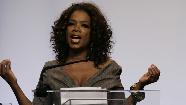 Talk show host Oprah Winfrey speaks about her trip to the Auschwitz concentration camp and the importance of Holocaust education to help combat genocide during an address Wednesday, Oct. 25, 2006, at the United States Holocaust Memorial Museum in Chicago. (AP Photo/Charles Rex Arbogast)