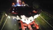 From there it moved at a nearly glacial pace escorted by tow trucks, police vehicles and gawkers who lined the route to take photos. It finally rolled into the suburban Chicago lab shortly after 4 a.m. Friday with an "oversize load" sign and a waving American flag.