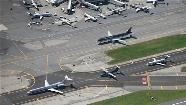 Planes taxi on runways at LaGuardia Airport, Monday, Sept. 8, 2008 in New York. (AP Photo/Mark Lennihan)