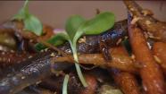 Plating: Toss cooled roasted carrots with sunflower seeds, oil, salt, pepper and candied garlic. Arrange on a plate with a few dollops of orange yogurt. Garnish with sunflower shoots.