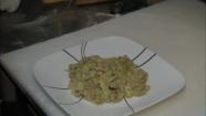 Mix chestnut flour and all purpose flour together. Make a well in the flour and add wet ingredients. Work dough until all ingredients are mixed well. Dough will be stickier than when making regular pasta, so, for best results after kneading, roll dough into log form, place in saran wrap and refrigerate for about 30 - 40 minutes. Cut dough log into 1 inch pieces and using a rolling pin roll out dough then fold and slice into about an eighth 1/8" ( a little bigger than a fettuccine) sprinkle some flour as you go along so it doesn't stick. Add pasta to boiling water and remove immediately as it surfaces which is approximately 3 minutes. Immediately transfer pasta to sauce and sauté follow directions below.